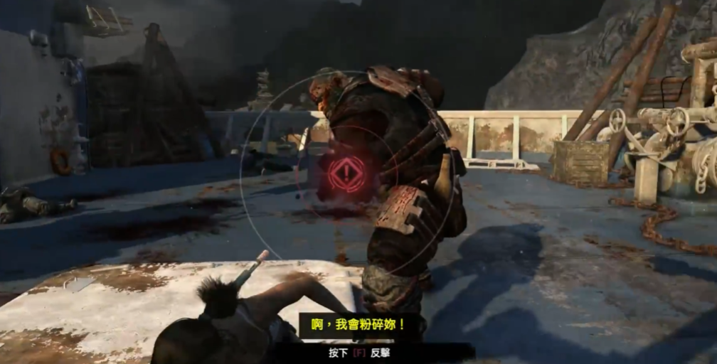 战斗中要合理利用场景中的掩体躲避盔甲人的冲锋攻击。当其举剑准备劈砍时,按Shift键进行闪避可获得短暂无敌时间。成功闪避后若距离较近,系统会再次出现F键提示,发动反击可加速战斗进程。注意盔甲人在半血后会进入狂暴状态,攻击频率和移动速度都会提升。