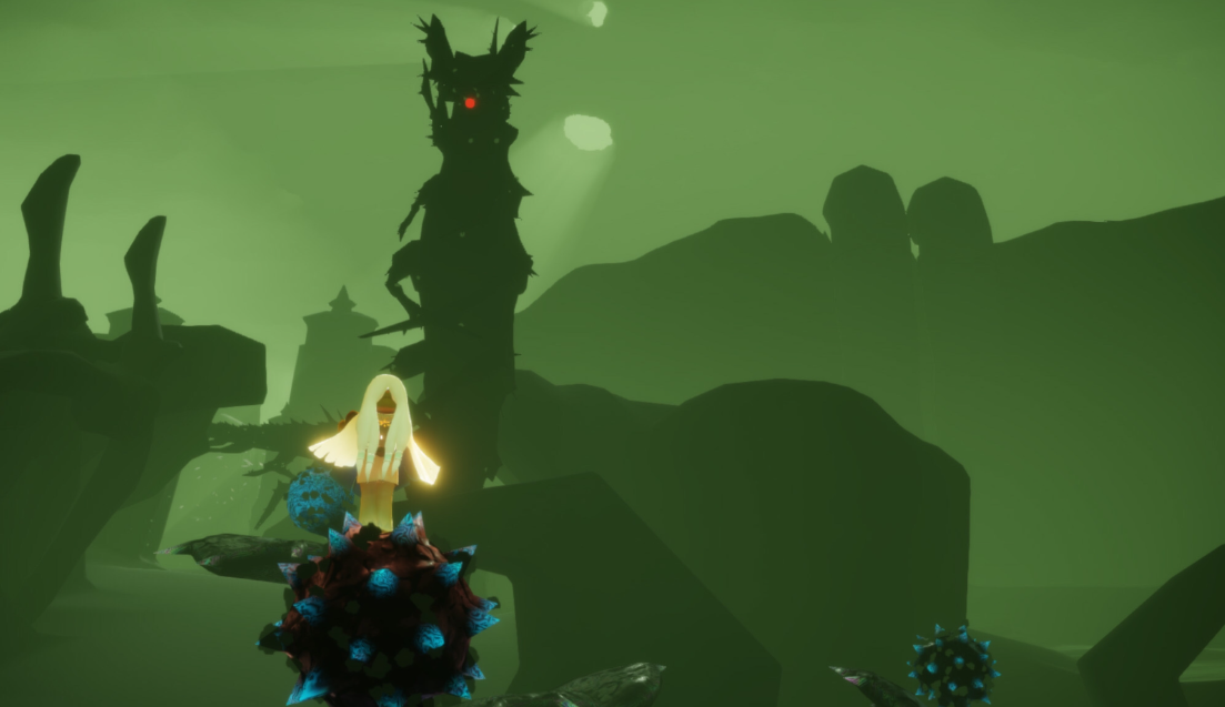 古战场比较开阔,咱们可以顺着地灯补充能量。朝着城堡前方隐约可见的高大建筑飞,如果找不到方向就点击头部,会有信号指引。飞到大门前会发现一个台子,点燃上面的机关蜡烛就能开门。注意门开的同时会释放四条冥龙,所以点燃后要立刻进门。进去后就是暮土终点,点亮神坛前的蜡烛并跪坐就能通关。
