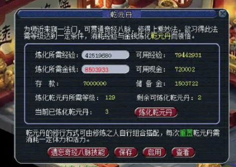 乾元丹的炼化需要大量经验和金钱,尤其是129级之后每颗消耗近60万经验,建议先通过口袋版刷经验比较划算。洗点时优先保留核心节点,比如海中蛟虬的龙辉和云龙真身的布雨,过渡性节点如加防御的铜躯可以后期补足。现在游戏里还有乾元丹模拟器,咱们可以提前规划好路线再实操,避免浪费珍贵资源。
