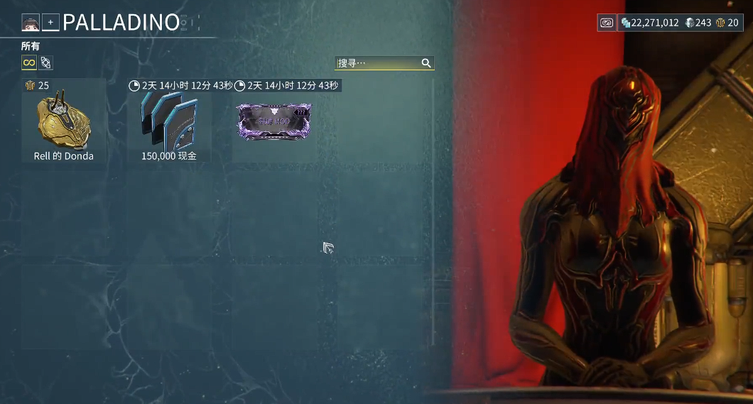 完成哈罗的幻影任务后,Palladino将提供独特的交易功能。玩家可用晶体赎品兑换红色宗教专属MOD或装饰品,这类资源主要通过击杀高等级敌人或完成九重天任务获取。交易系统每周刷新,建议优先换取对战斗流派有显著加成的MOD。