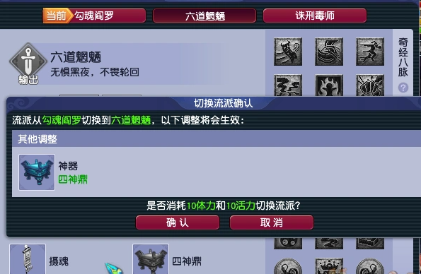 经脉选择是力地府转型的核心环节,必须切换至六道魍魉流派并重点激活关键经脉节点。首要选择灵幡经脉,该效果能将阎罗令改为物理伤害结算并附加230点临时伤害,这是力地府输出的基础保障。悟道经脉可提升攻击被六道轮回单位的伤害结果,配合擎苍镶嵌效果能实现20%概率给非首目标附加六道轮回。力地府的法术伤害20%会转化为物理伤害,因此项链应选择高法伤属性并镶嵌舍利子。