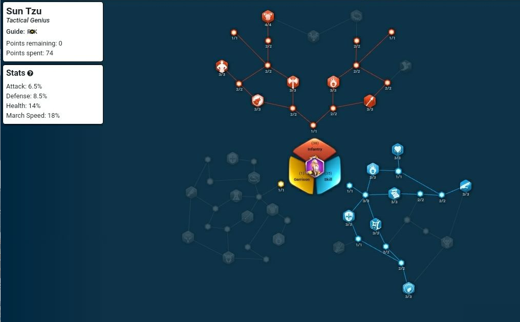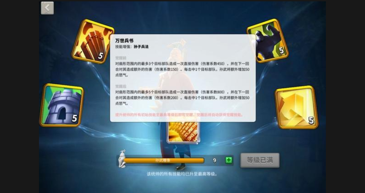 优先点满技能系天赋,尤其是增加怒气回复和技能伤害的部分。前期资源有限的话,可以暂时忽略驻防天赋,专注野战方向。如果后期想转型驻防,再洗点调整也不迟。技能升级顺序推荐主升主动技能孙子兵法,其次是兵家至圣和兵者诡道,最后补上用兵之道。这样加点能最大化孙武的输出和生存能力,让他无论是冲锋陷阵还是守家都非常给力。