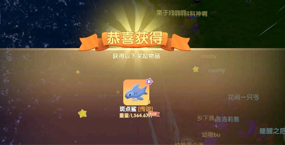 斑点鲨的获取条件更为苛刻,需在夜晚(20:00-次日6:00)且下雨天气时前往浆果丛林鱼池。其身体呈长纺锤形,背部有显著白斑,兑换奖励为斑点鲨留声机。由于夜晚和雨天双重条件叠加,玩家需提前关注游戏内天气预报,并准备充足的中级渔网以应对低概率问题。