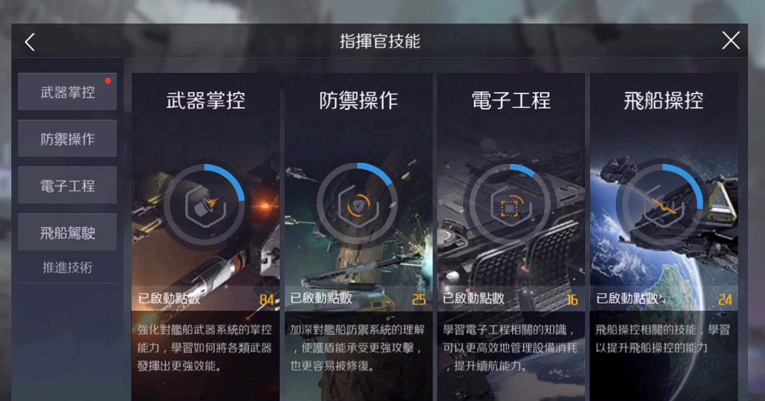 武器掌控属性下的细分技能需针对性强化,磁轨炮、粒子炮、激光炮和导弹的伤害、射程及暴击率需根据阵营专精选择。新欧罗巴联邦侧重导弹防御,天启帝国专精激光炮伤害,斯瓦罗斯共和国主攻磁轨炮射程,晨曦经合体则强化粒子炮与机动性。防御操作属性提升护盾抗性与回充效率,电子工程属性优化能量管理与装置能耗,飞船驾驶属性增强机动性与信号隐蔽,三者需根据战斗场景动态调整配比。