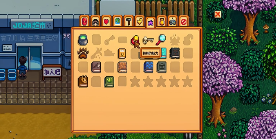特殊魅力是一种钱包物品,获得后可以在钱包界面查看。它的主要功能是永久增加每日运气值,具体效果是每日运气+0.025。虽然这个数值看起来不大,但作为永久增益效果,长期积累下来对游戏中的采矿、钓鱼等活动都有积极影响。特殊魅力的获取过程融合了任务完成、探索解谜和资源收集等多种玩法要素,体现了星露谷物语游戏设计的精巧之处。