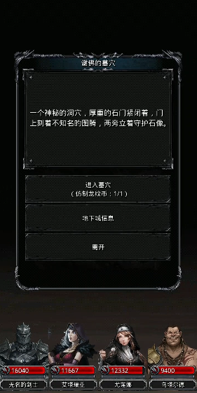 墓葬副本是地下城堡2中一个重要的挑战地点,位于图11的坐标(45,22)处。进入该副本需要先在市场花费5000金币购买龙纹银币,随后前往图4正右方的据点完成挑战,获得仿制龙纹硬币蓝图。制作仿制龙纹硬币需要铁×18000、秘银×2600和强者血液×3,完成后即可在图11的指定位置进入墓葬副本。若挑战失败,当日可消耗300食物再次进入。