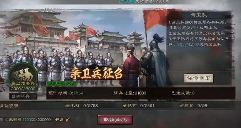军事类科技树中的加速部队训练项目能永久提升所有征兵点的运作速度,该效果可与城建加成叠加。守备分支下的军机营升级同样能缩减征兵时长,且其影响范围涵盖主城、分城及野外营帐。研究这些科技需要消耗大量资源与时间,应在游戏中期资源产量稳定后优先投入。武将委任系统中的练兵官职位可为特定兵种提供额外的训练效率加成,需根据主力部队的兵种构成进行针对性配置。