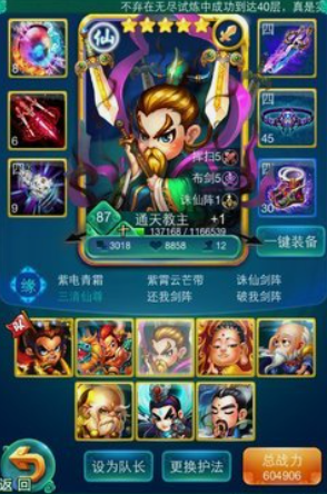 三清组合(太上老君、通天教主、元始天尊)作为仙族核心阵容,其强度主要体现在入阵流的战术体系上。这套阵容的关键在于利用三清的群体增益和恢复能力,配合特定护法的遁让机制形成持续压制。元始天尊建议优先点满遁让神通,太上老君主加润泽和道之始治疗技能,通天教主则侧重诛仙阵和布剑的输出强化,这种加点方式能最大化三清的团队贡献。