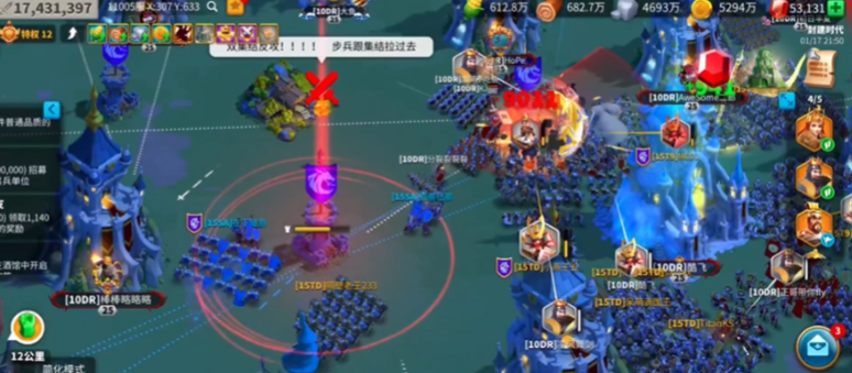 城墙耐久度降到50%时,敌方会派兵迎战,这时候千万别硬扛。如果咱们兵力不足或战力不够,立刻呼叫盟友集结支援。集结攻击能分摊伤害,避免单支部队被全灭。胜利后继续集中火力拆墙,直到城墙完全倒塌。箭塔是接下来的重点目标,让步兵顶在前面吸收伤害,后排单位专注输出。箭塔拆除后,要塞的防御能力会大幅下降。