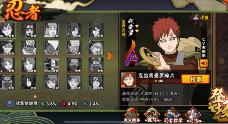 忍者选择方面,建议使用具备大范围、持续时间长的技能角色,比如忍战我爱罗或秽土二代,他们能通过远程压场技能封锁金鸣的走位,而不是依赖近身缠斗,这样能更好地保持安全距离,避免被他频繁起手。保持中远距离战斗是关键,不要轻易进入他的近距离范围,这样可以减少被他消耗的机会。