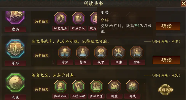 另一种方案更注重防守和生存,推荐使用援其必攻、救主和励军。援其必攻在治疗生命值最低的友军时能附加15%的减伤效果,救主则可以降低主将受到的7%伤害,这样组合能让队伍在前期减伤和后续治疗中稳如泰山,减少战斗中的兵力损失,尤其适合开荒或持久战场景。这套兵书没有负面作用,能显著提升左慈的辅助稳定性。
