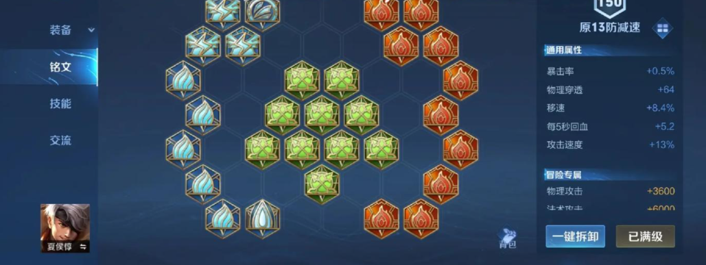铭文方面,夏侯惇主要选增加生存和输出能力的组合。红色铭文通常带10个宿命,加攻速、生命和物理防御;蓝色可以用5调和5狩猎,调和能回血加移速,狩猎提升攻速和机动性;绿色推荐10虚空,提供生命和冷却缩减。这套铭文让他在前期就有不错的坦度和伤害,对线时更容易占优势。如果追求更均衡的属性,也可以选蓝色10调和加绿色10鹰眼,鹰眼补足物理攻击和穿透。