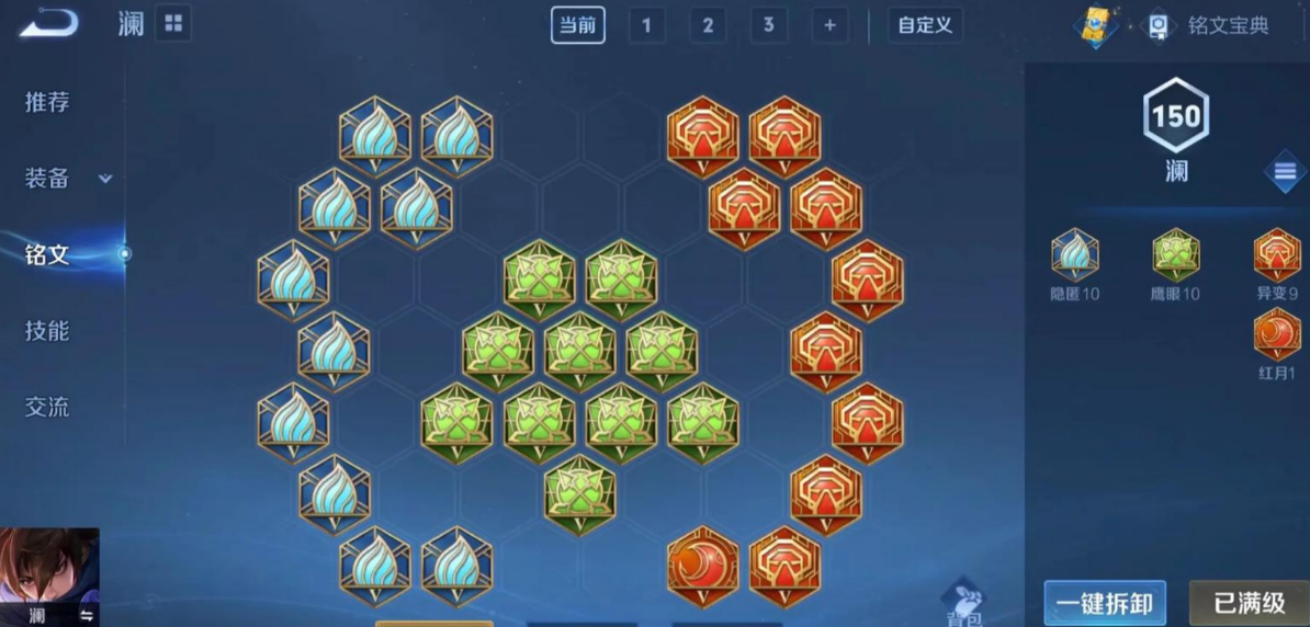 铭文方面建议采用百穿组合来最大化伤害和机动性,常用的是10异变、10鹰眼和10狩猎。如果觉得续航不够,可以把部分狩猎换成夺萃来提升吸血能力,这样配合装备效果能让澜在战斗中更持久。澜的吸血机制对野怪和小兵会有衰减效果,所以不能完全靠清野来回血,得把握好游走和进场的节奏。