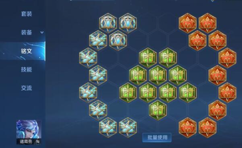 铭文搭配方面,常用的方案是十个狩猎、十个心眼和十个梦魇,这样移速、攻速和法穿都兼顾,诸葛亮跑得快、打得快。如果想增强续航,可以带点贪婪或轮回,增加法术吸血,对线或刷野时回血更多。铭文选前期发育会更舒服,技能连招也更流畅。