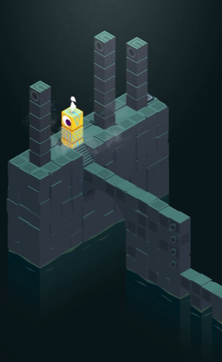 进入第二个主要场景后,谜题复杂度提升,需要艾达与图腾进行分工协作。玩家需先控制图腾去触动特定机关,使场景中的立柱发生旋转,从而改变道路的连接方式。要让艾达站到图腾上,由图腾载着艾达移动到新的位置。需要让艾达离开图腾去触发另一个机关,此时图腾可能会下降或改变位置,玩家需再次移动图腾至新的目标点,并操作艾达站回图腾上。这一连串操作体现了本关的核心玩法,即通过分离与组合两个可操控单位来达成目标,玩家必须精确规划每一步的移动顺序和最终站位。