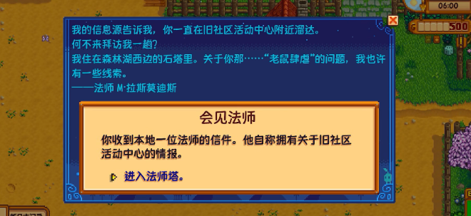 根据信件的指引,你需要前往鹈鹕镇森林区域的最西边,那里矗立着一座独特的紫色高塔,即法师塔。进入塔内与法师对话,他会揭示社区中心里那些看似小老鼠的生物实则是名为祝尼魔的魔法生物。为了让你能与它们交流,法师会赠予你一瓶特殊药水,喝下后经过一段短暂的动画,你的角色就将完全掌握祝尼魔的语言,这是理解游戏世界魔法层面的第一步。