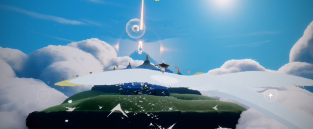 抵达冰淇淋山后可探索山顶平台与周边云海,平台面积宽敞适合拍照打卡,周围环绕着蓬松的白色云团,整体景观与冰淇淋造型高度契合,站在山顶能俯瞰晨岛全景,远处的沙漠、神庙与云海层次分明,飞行过程中可收集沿途的光之翼提升续航能力,降落之后在平台边缘缓慢移动,避免踩空坠落,想要停留更久可反复使用椅子补充能量,也可与好友在山顶互动拍摄风景素材,充分感受高空景点的独特视觉效果。