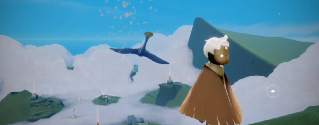 前往晨岛冰淇淋山需从晨岛神庙右侧云层出发,借助背背飞天或单人高空攀升抵达山顶平台,核心路线为晨岛出生点→神庙前广场→右侧云层上方→冰淇淋山主体区域。进入晨岛后先沿着主路向前飞行,穿过初始山洞抵达广阔沙漠,朝着远处发光的神庙方向前进,沿途收集散落的烛光补充斗篷能量,避免中途因能量不足坠落,抵达神庙前平台后不要进入神庙内部,转向右侧的大片云层区域,这里是通往冰淇淋山的关键入口,云层上方气流稳定,无强风墙干扰,适合持续向上攀升。