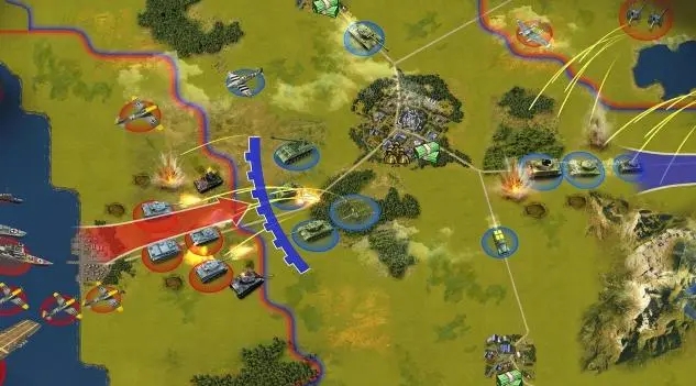 占领军事区后立即建造三座炮塔,将炮塔部署在可覆盖鹰城守军的位置,利用炮塔自动攻击消耗虎王坦克与残余兵力。若炮塔射程未达城内目标,采用风筝战术,用轻坦或侦察车引诱虎王脱离防御塔射程,再集火围歼。同时派遣战斗机掌控制空权,拦截鹰城轰炸机与战斗机,防止己方地面部队遭空袭。推进至鹰城主城范围时,攻城炮分散行进,避免被范围攻击团灭,优先锁定四级、五级防御塔摧毁,重坦与坦歼协同清理城内装甲部队,各兵种严格分工,不盲目冲锋,确保每一步推进都能稳固占领区域。