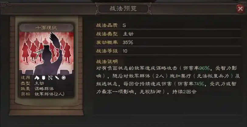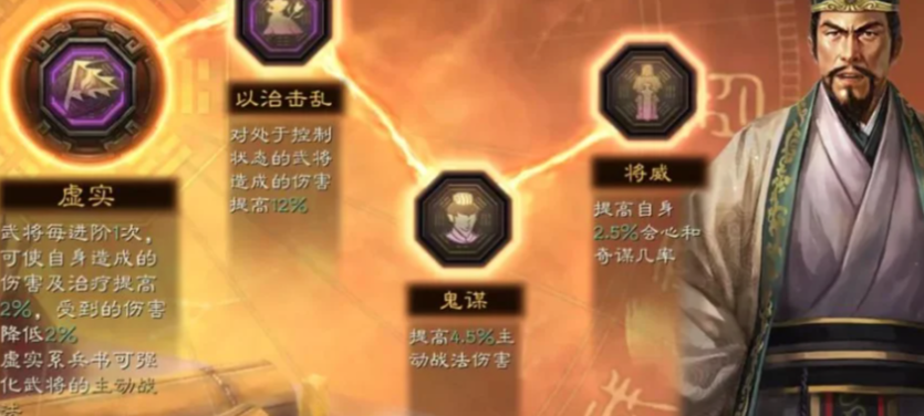 程昱是魏法象的主力输出,兵书选择虚实系以治击乱,搭配鬼谋与将威,以治击乱针对处于异常状态的敌军提升伤害,与贾诩的混乱效果形成完美联动,大幅提升收割效率,鬼谋增加谋略伤害与奇谋概率,放大士别三日与十面埋伏的爆发能力,将威则强化最终输出伤害,让程昱在多回合作战中持续打出高额谋略伤害,全智力加点配合这套兵书,能让程昱稳定针对被控敌军完成输出压制,成为阵容的核心伤害来源。