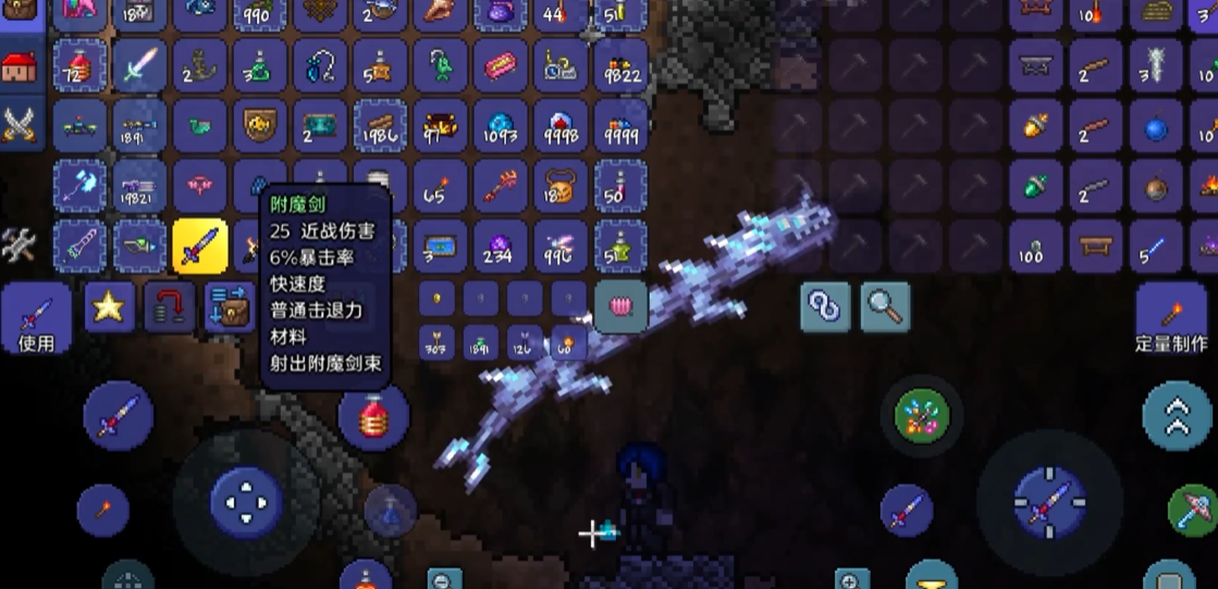 实际操作中,建议携带照明宠物或使用天顶剑等工具辅助探查地下区域。剑冢生成位置完全随机,可能需要反复探索多个地下洞穴。使用特定地图种子可以固定剑冢位置,但这种方法依赖于外部信息而非游戏内机制。附魔剑的战斗性能相当出色,其射弹每1-2秒发射一次,能在轨迹上留下火花并提供照明。这把武器可以视为附魔回旋镖的对应物,放入微光中会转变为附魔回旋镖。