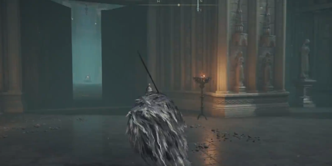 隐藏路径位于左侧的一个小门后,穿过门后需攀爬一段梯子,梯子顶端有一个宝箱,内含头盔辉石粪金龟。拿到宝箱后,从阳台跳下可捡到黄金卢恩,并回到传送门附近。需重新调整方向,沿宫殿内部的走廊前进,避开敌人并找到通往上层阶梯的入口。阶梯尽头有一名强大的守门敌人,需谨慎应对其快速攻击,击败后即可打开大书库的大门。