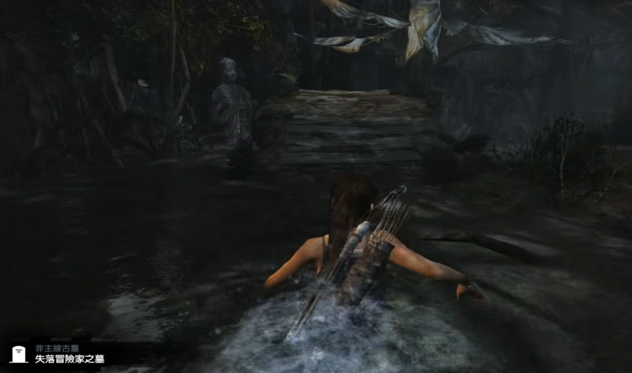 失落探险家古墓是游戏中较早出现的支线任务之一,目标是通过摧毁支撑飞机的多个支柱,让机身部分坍塌,从而攀爬至宝藏所在位置。进入洞穴后,玩家需先拾取三个灯笼,将其扔到裹有布条的木柱上,再用弓箭射下悬挂的死尸头上的灯笼点燃木柱。点燃最后一个木柱需要利用火盆和货物堆的互动,最终通过燃烧的机身抵达宝藏。这一任务考验玩家对环境和物理机制的运用能力。