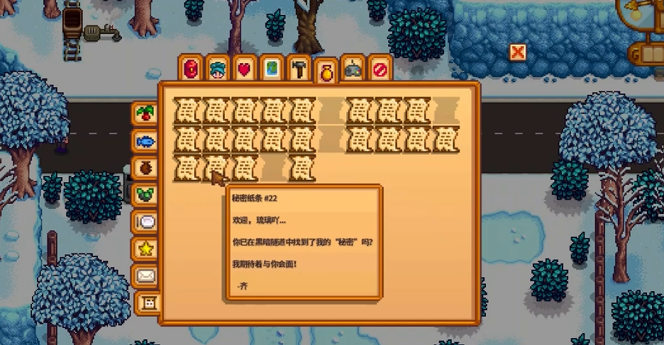 深入矿洞是另一项关键高级任务,玩家需抵达矿井最底层。利用每5层一停的电梯系统可大幅提升效率,同时建议在幸运日下矿以提高楼梯出现概率。若资源充足,可提前用99个石头制作矿梯直接跳层。矿洞底层隐藏着稀有矿物和强力怪物,击败它们有几率掉落高级装备,如史莱姆克星戒指或吸血戒指,对后续战斗探索至关重要。收集25张秘密纸条是后期的重要目标,这些纸条散落在不同场景,如矿洞、森林或村民家中。完成收集后可解锁隐藏剧情和奖励,例如熊的智慧任务需携带枫糖浆前往秘密森林触发。纸条内容往往提供关键线索,如沙龙骨架位置或特殊物品获取方式,建议优先解读并规划执行顺序以节省时间。