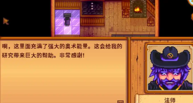 好感度的提升,法师会通过邮件向玩家赠送礼物,这些礼物通常带有魔法属性,可能是稀有的矿石或特殊材料,好感度越高,收到礼物的概率就越大。好感度积累到一定阶段后,将会解锁与法师相关的隐藏剧情。在初次见面时,法师会赠予玩家一瓶特殊药水,喝下后可以永久掌握祝尼魔的语言,从而理解社区中心内那些魔法生物的对话。