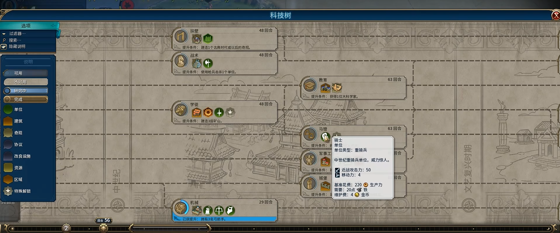文明6的智能材料科技位于未来时代的科技树中,需要先完成纳米科技、核聚变与机器人学三项前置科技才能解锁研究。