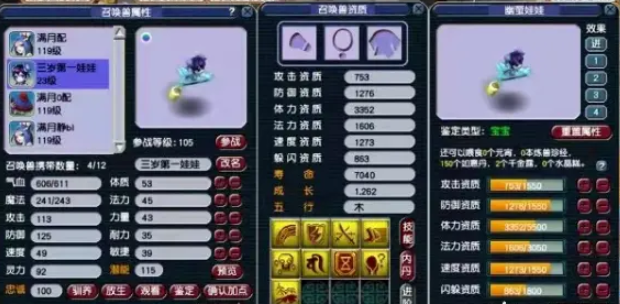 65级是一个重要的过渡阶段,玩家在这个等级可以携带多种实用性较强的宝宝。吸血鬼是攻宠的首选,天生拥有5个技能,满攻资可达1500,成长上限为1.045,其资质和技能数量在65级阶段具有明显优势。法宠方面,孤魂野鬼和幽莹娃娃是常见选择,前者适