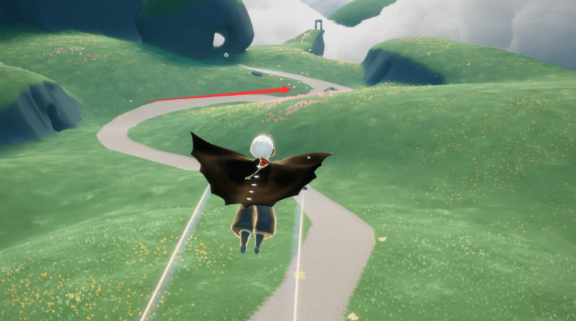 首先需要进入云野地图。从遇境传送到云野大厅后,你会来到蝴蝶平原区域。这时不要向前飞进云洞,而是直接向地图右侧的云层密集区域探索,那里有一个被云彩环绕的隐藏洞口。这个入口通常位于云野第二张图的右边,靠近一个明显的云洞,但要注意它被空气墙阻挡,